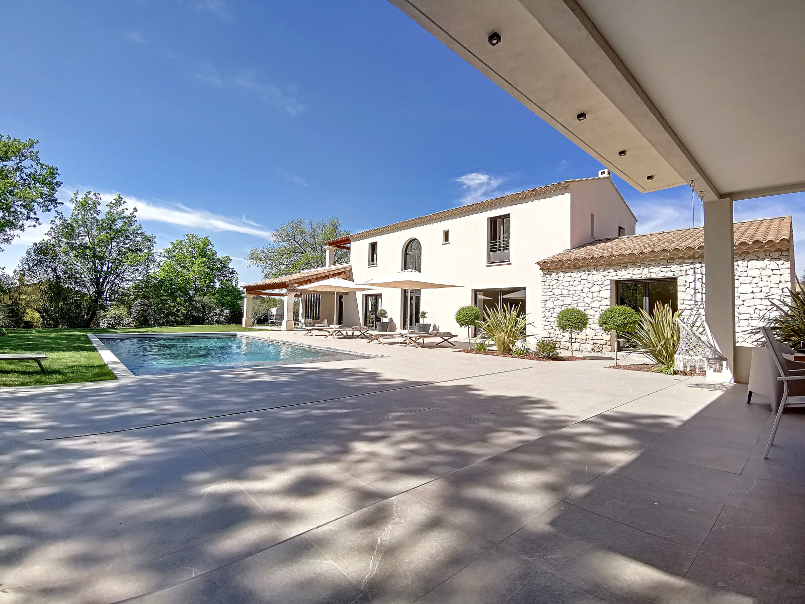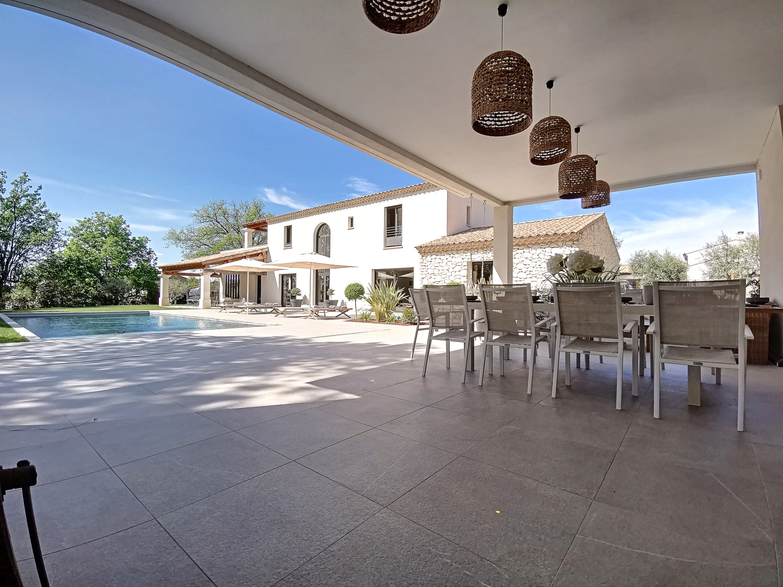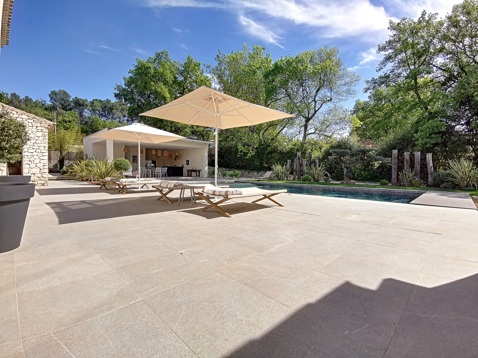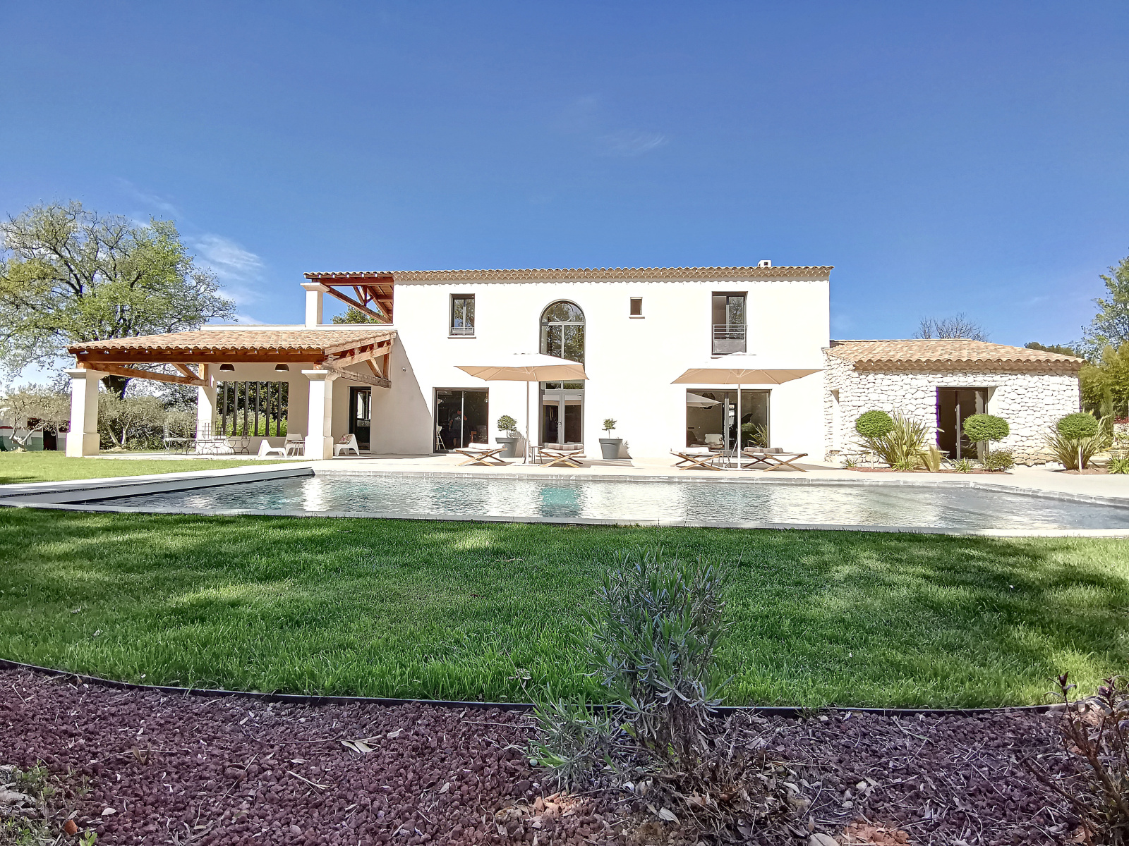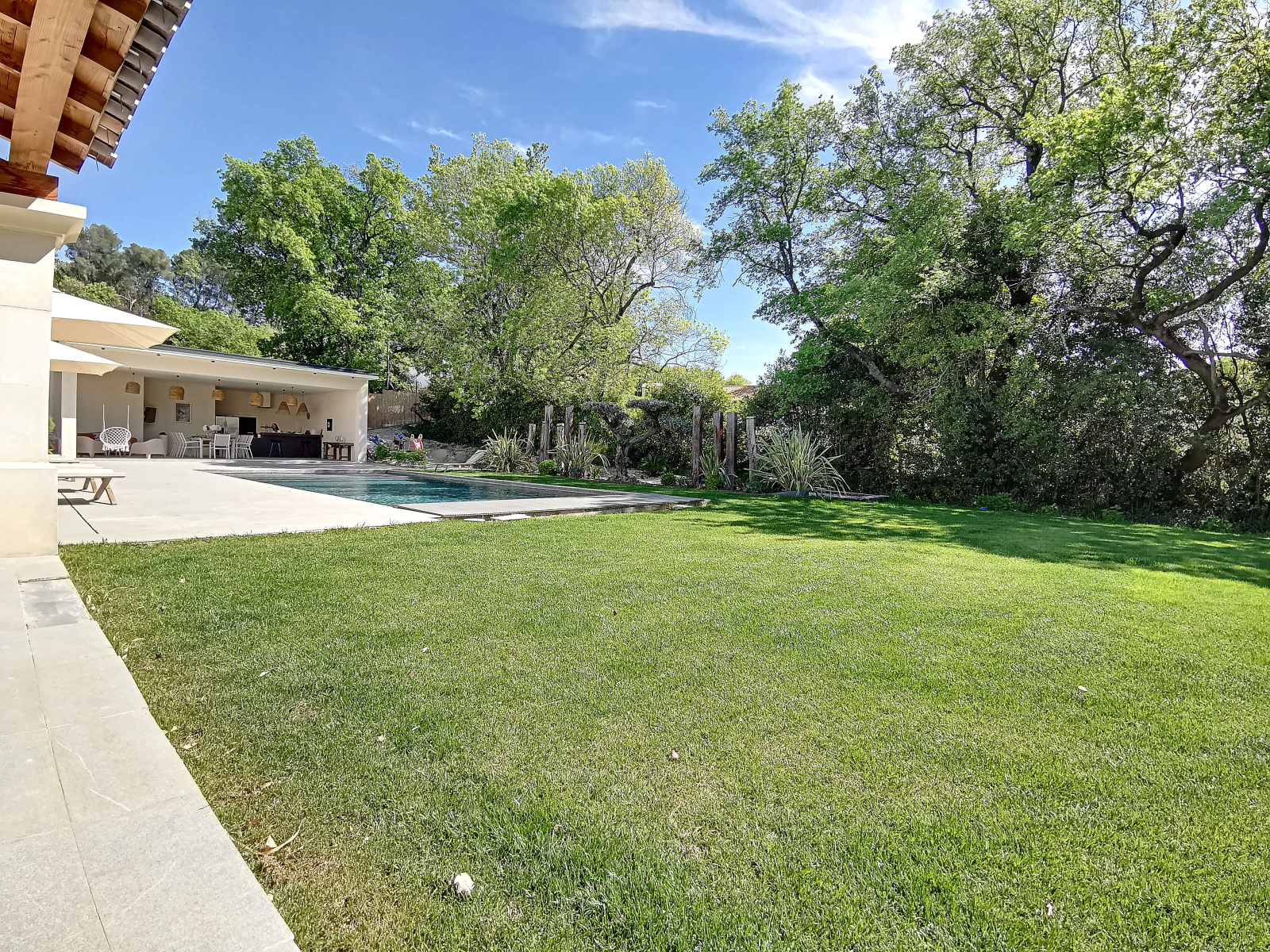 Vous pourrez également profiter d'un jardin d'environ 2000 m² avec une belle et spacieuse piscine, transat et salon de jardin, un immense pool house avec table, chaise et barbecue, idéal pour profiter des vacances au cœur de notre belle provence