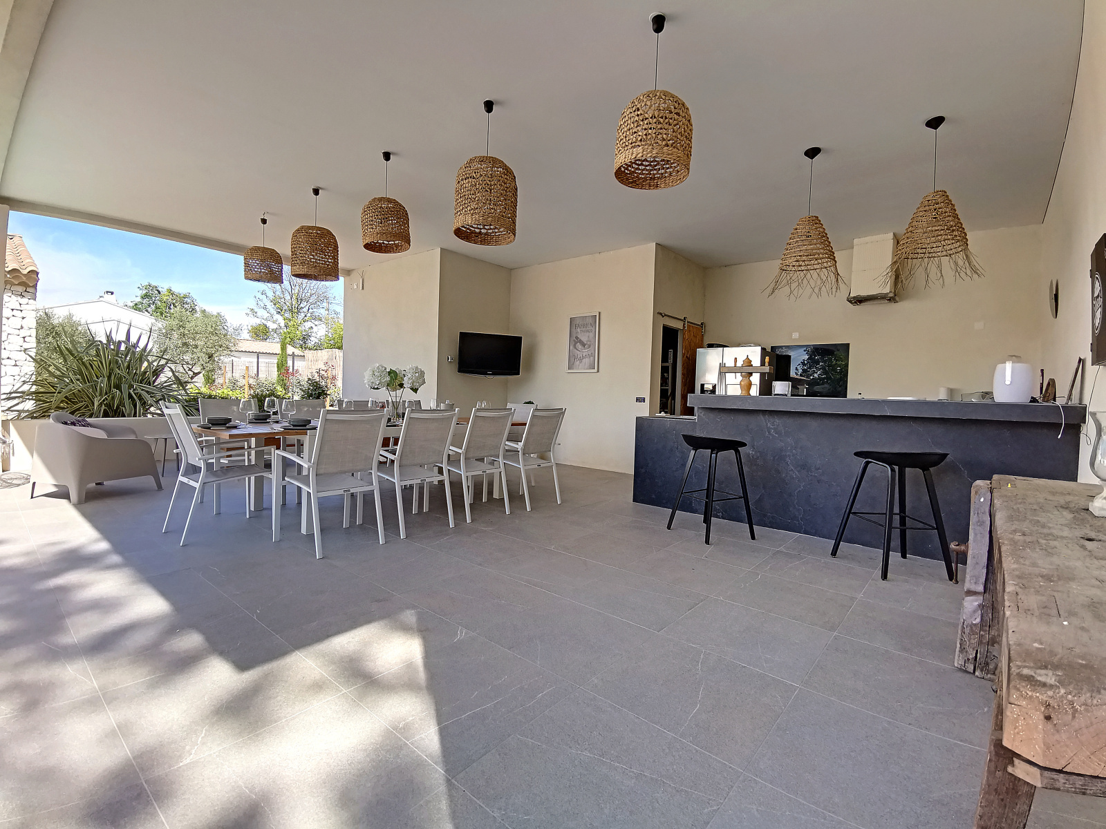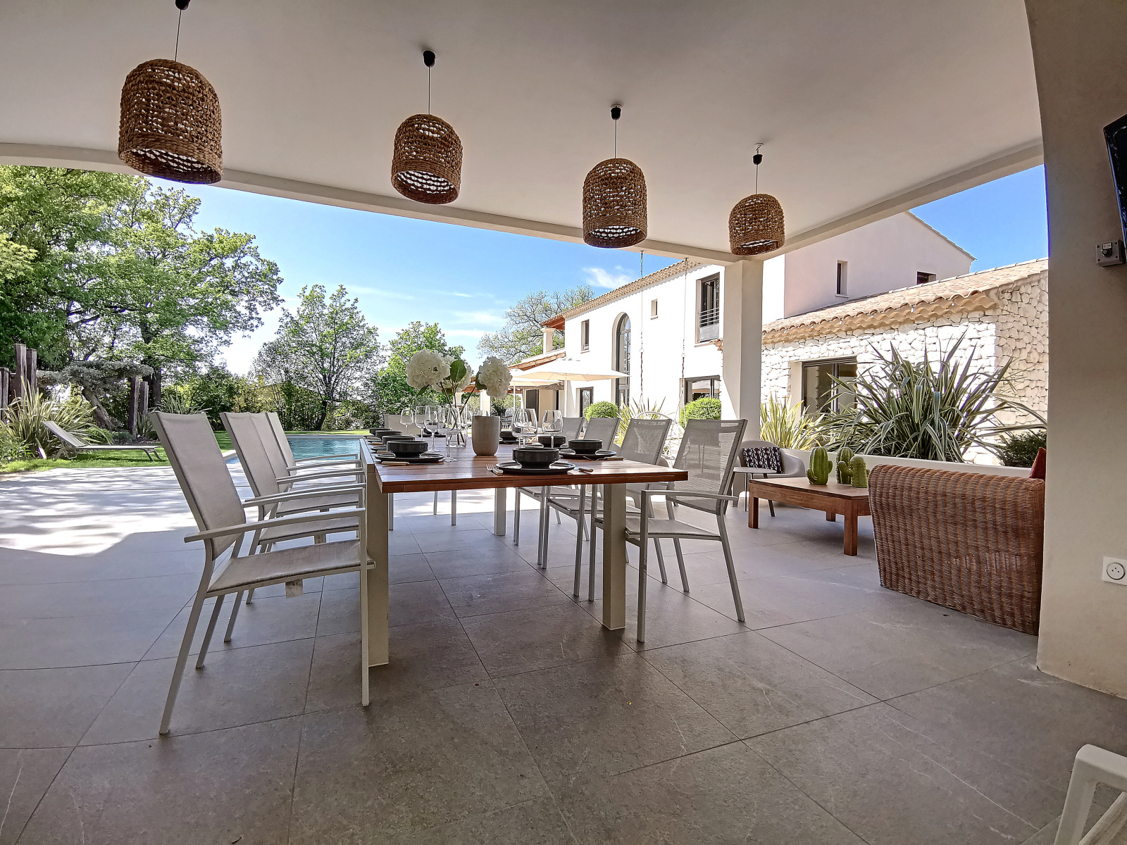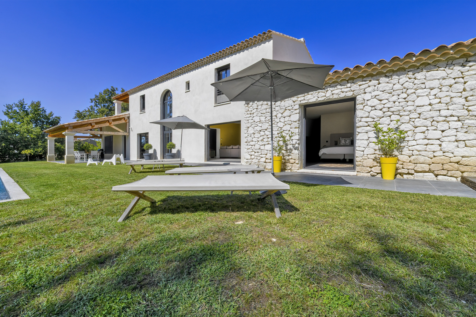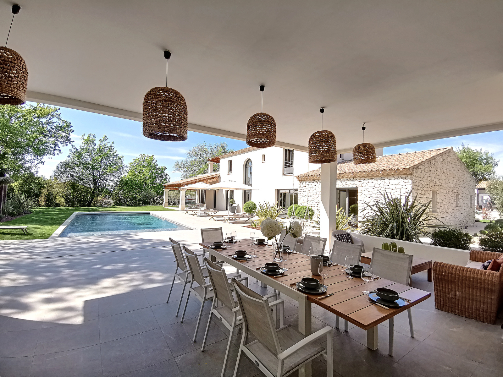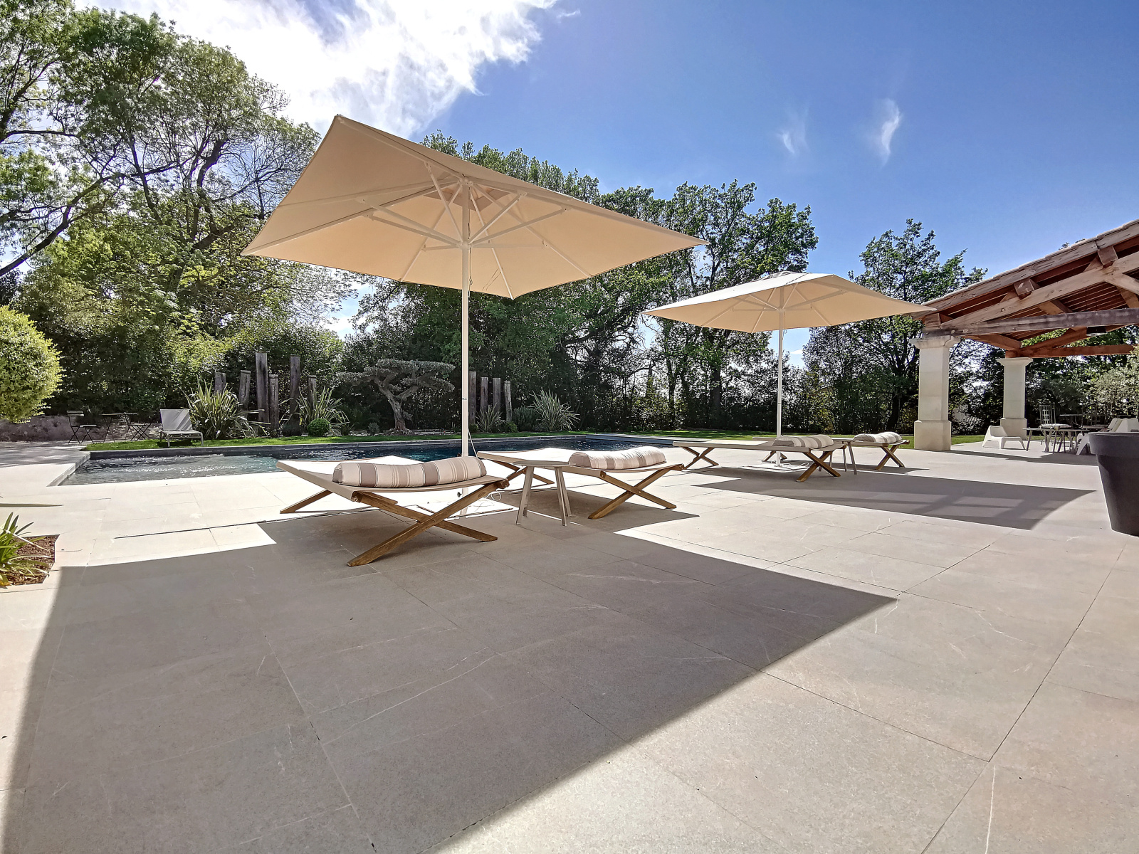 Vous pourrez également profiter d'un jardin d'environ 2000 m² avec une belle et spacieuse piscine, transat et salon de jardin, un immense pool house avec table, chaise et barbecue, idéal pour profiter des vacances au cœur de notre belle provence
