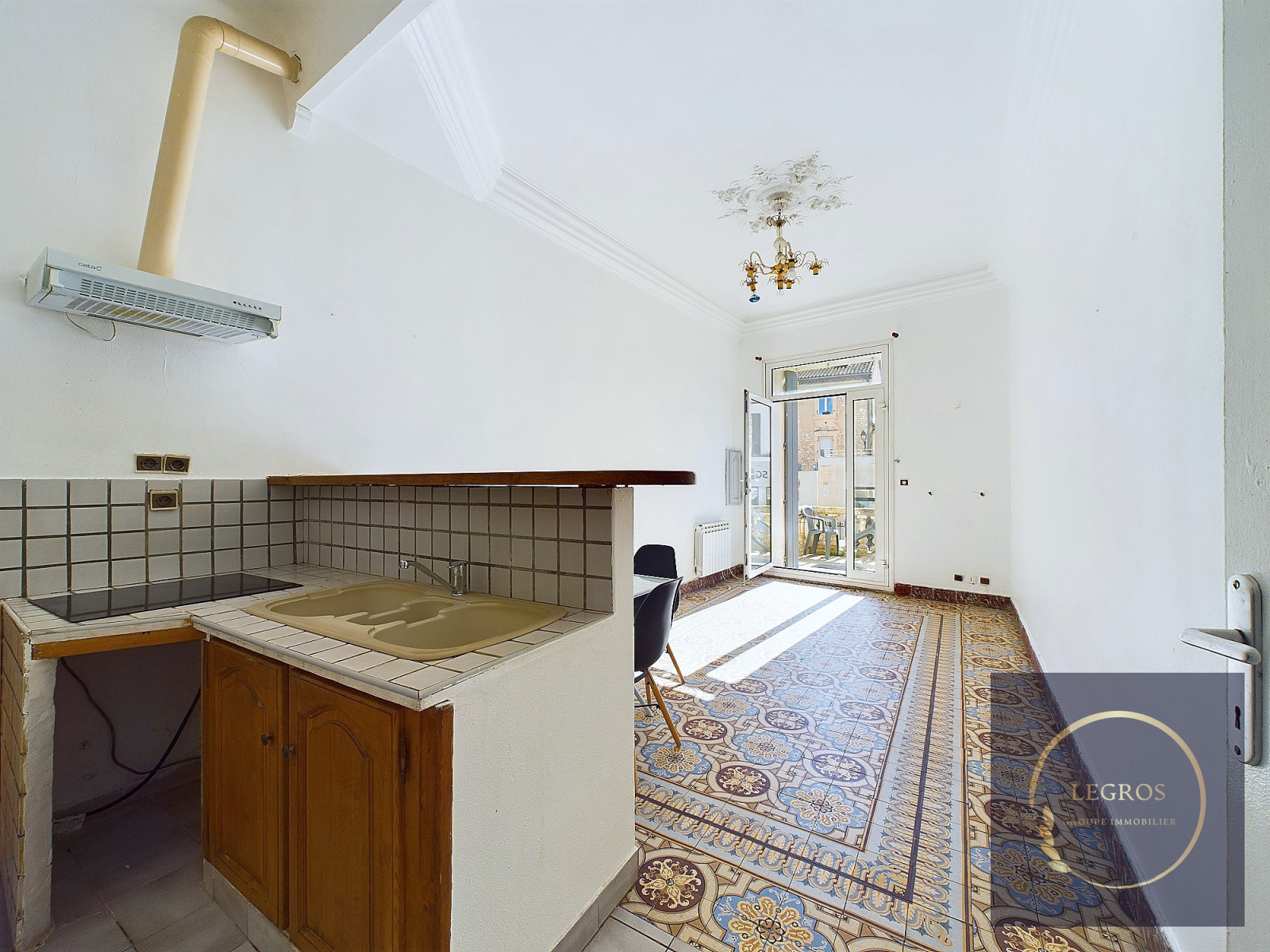 Châteaurenard (13160)À Chateaurenard, un appartement dans une bâtisse des années 1900 avec de belles hauteurs de plafond et moulures d'époque.