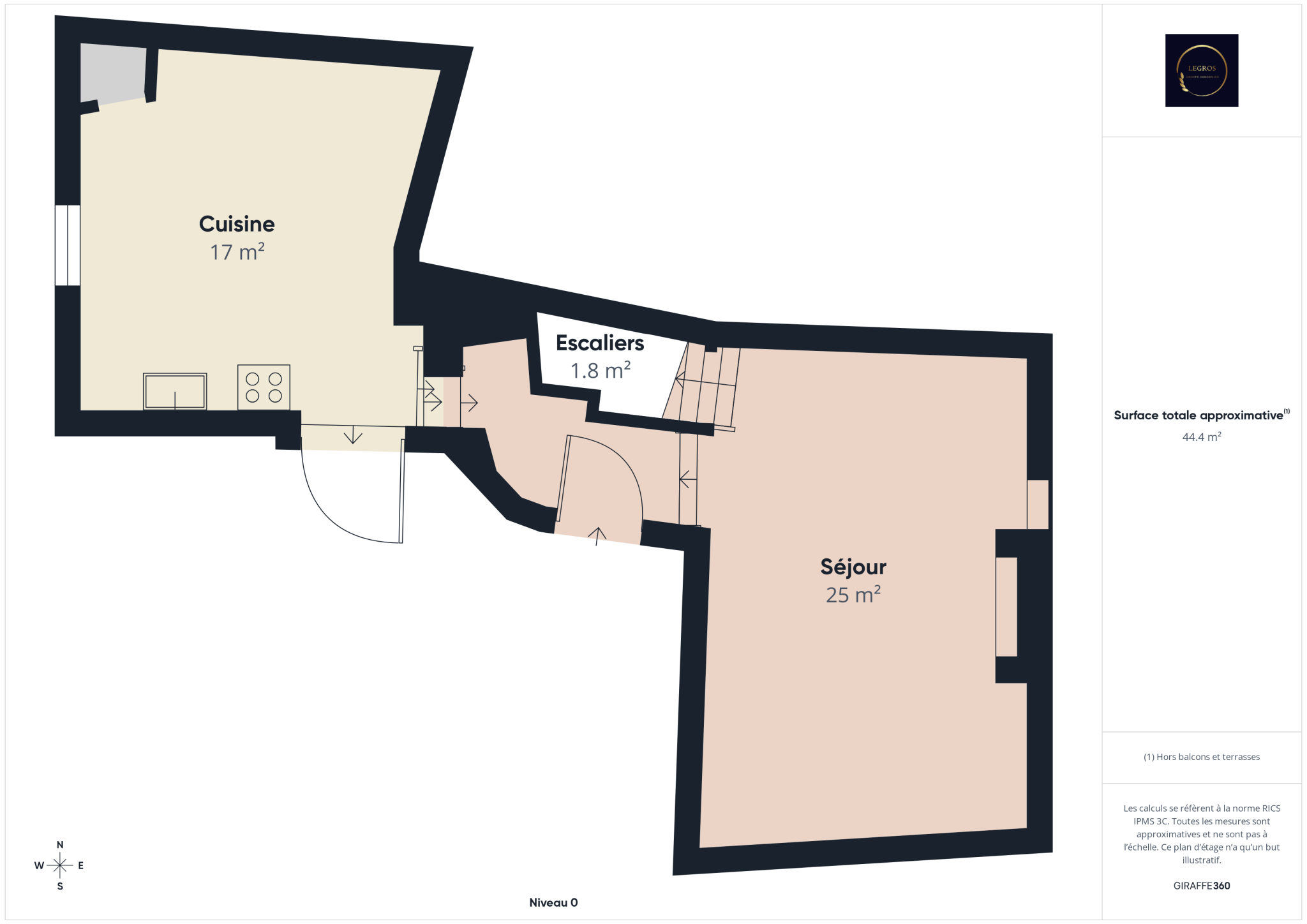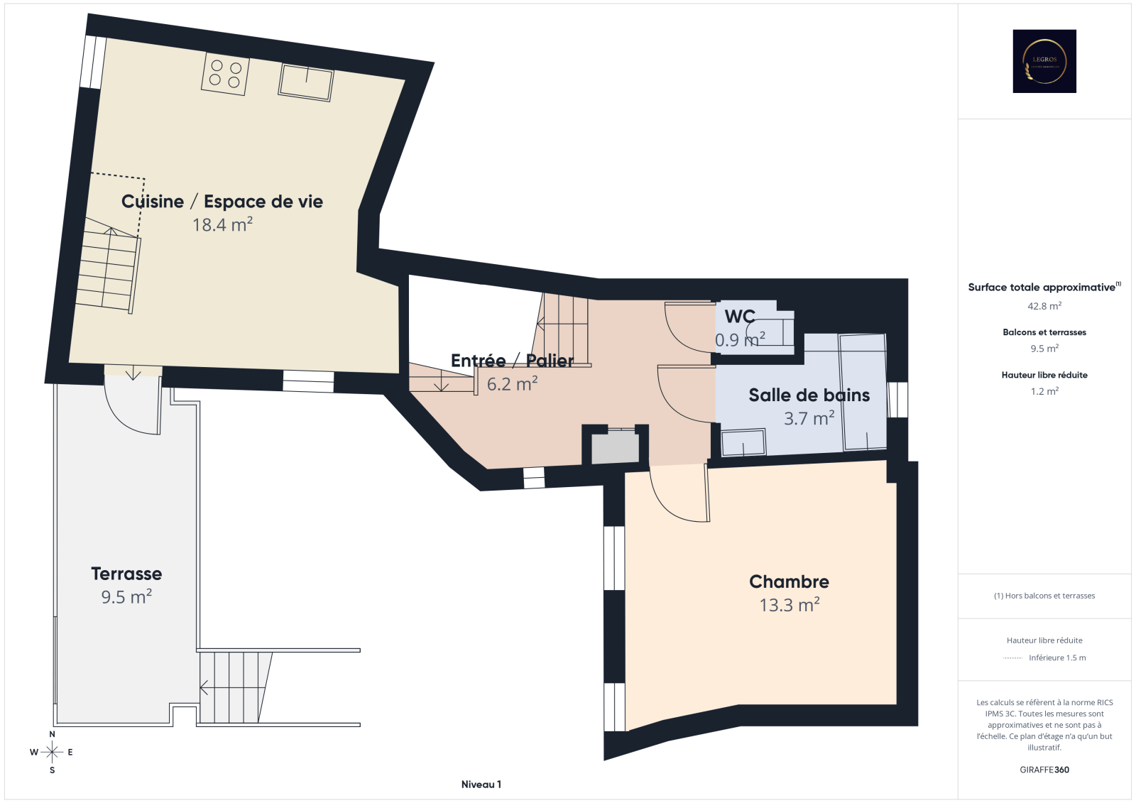 Situé au 1er étage, il se compose d’une pièce de vie lumineuse avec cuisine et séjour donnant sur une agréable terrasse d’environ 12 m² environ.