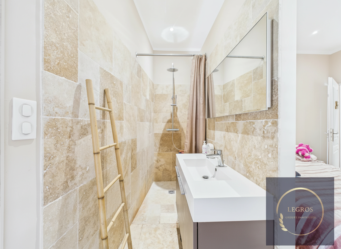 L’appartement dispose également d’une buanderie, d’une seconde salle d’eau et de deux toilettes. La climatisation assure un confort optimal en toute saison.