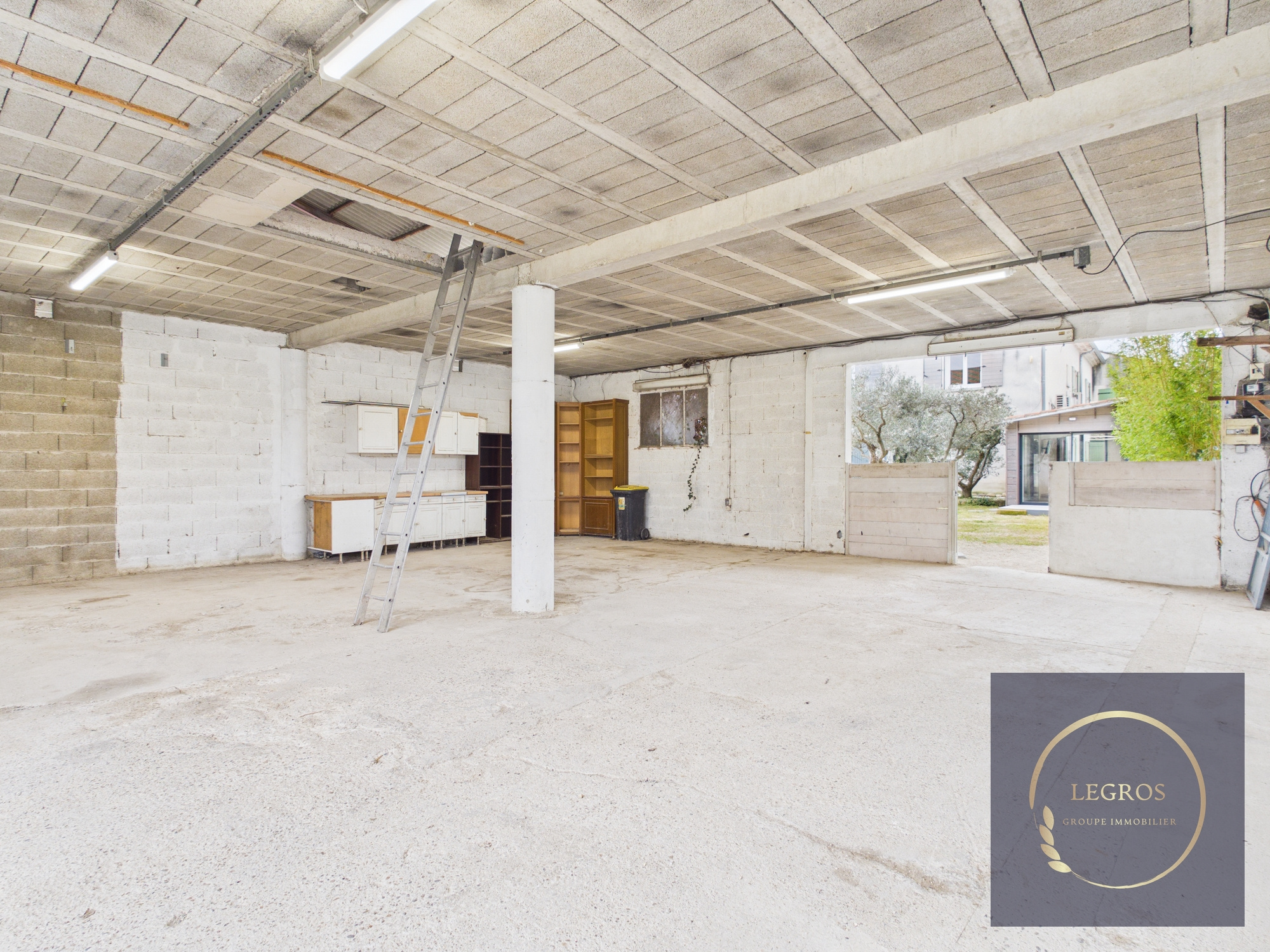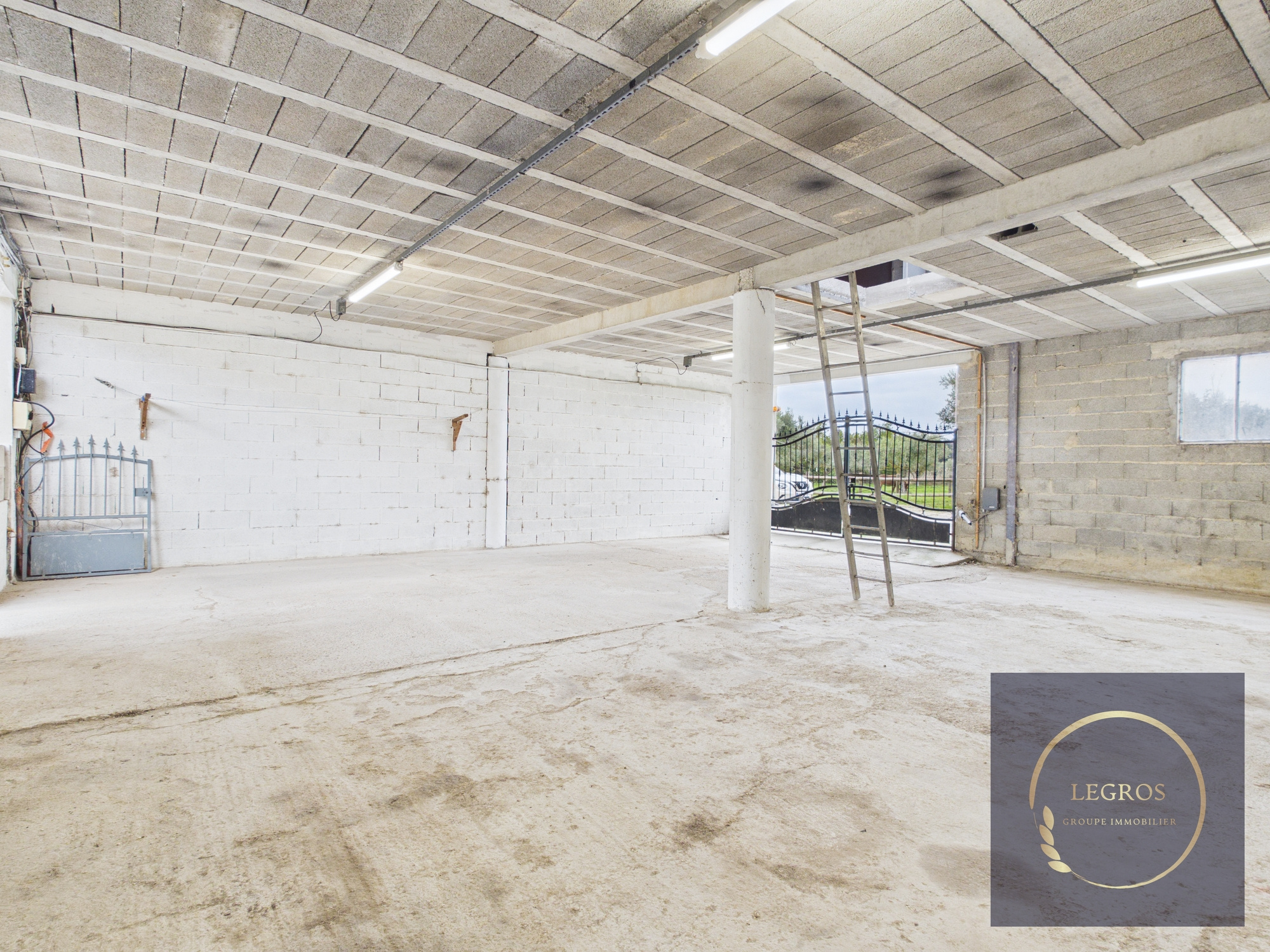 Un hangar spacieux de 100m² au sol et 100m² au dessus séparé par un plancher porteur parfait pour du stockage.