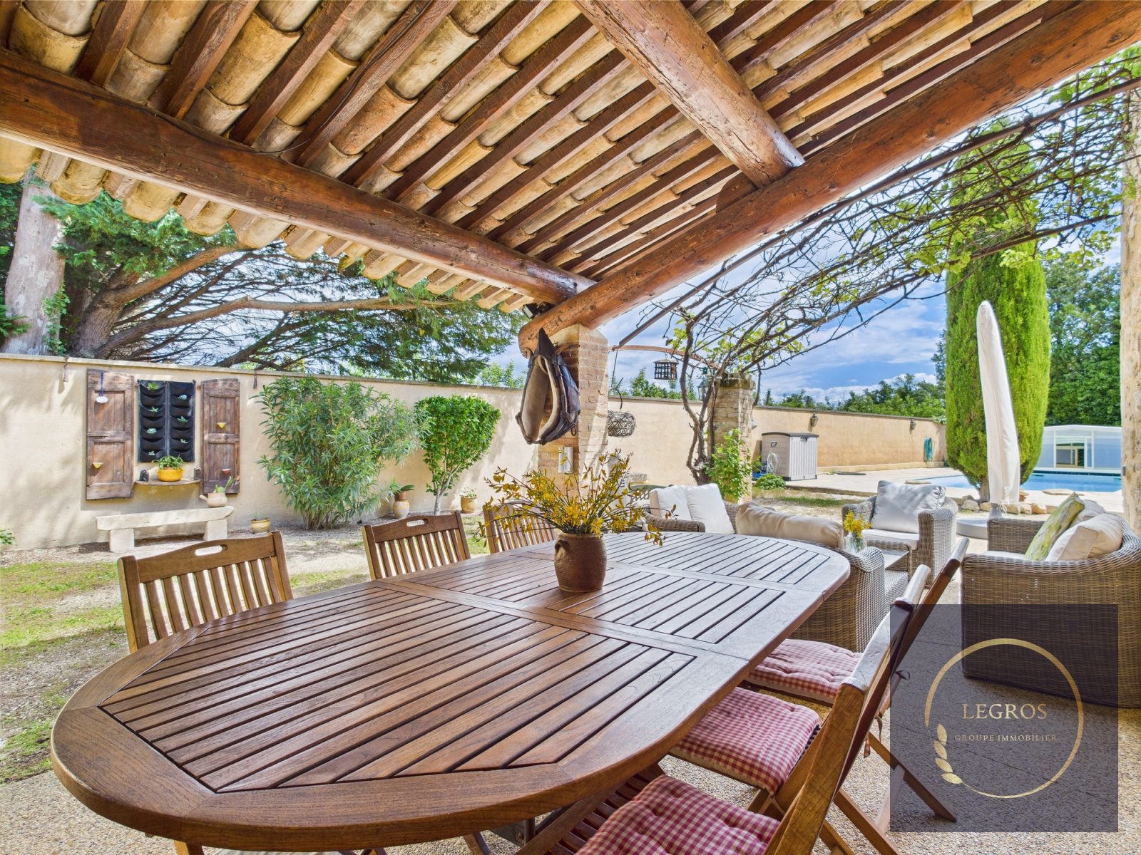 Cavaillon (84300)Mas provencal reamenagé avec gout comprenant sur un terrain de 1000 m²une piscine couverte,une grande terrasse extèrieure, un abri voiture, accés propriété protégée par un portail éléctrique .Vous accéderez au mas par une voie privée .
