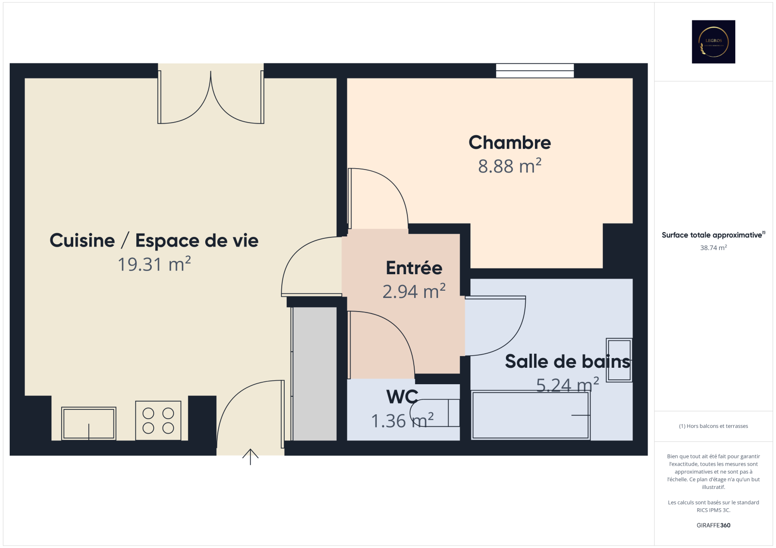 Appartement T2 de 41 m² avec terrasse et place de stationnement attitrée.