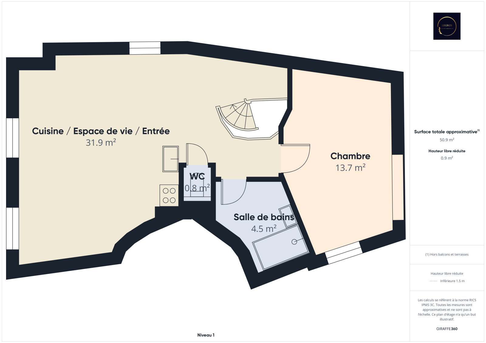 Installé au 1er étage d’une petite copropriété de 3 lots, il se compose d’un séjour lumineux avec cuisine ouverte entièrement équipée, d’un coin salon confortable, d’un espace repas, d’une chambre spacieuse avec rangements, ainsi que d’une salle d’eau moderne avec WC.